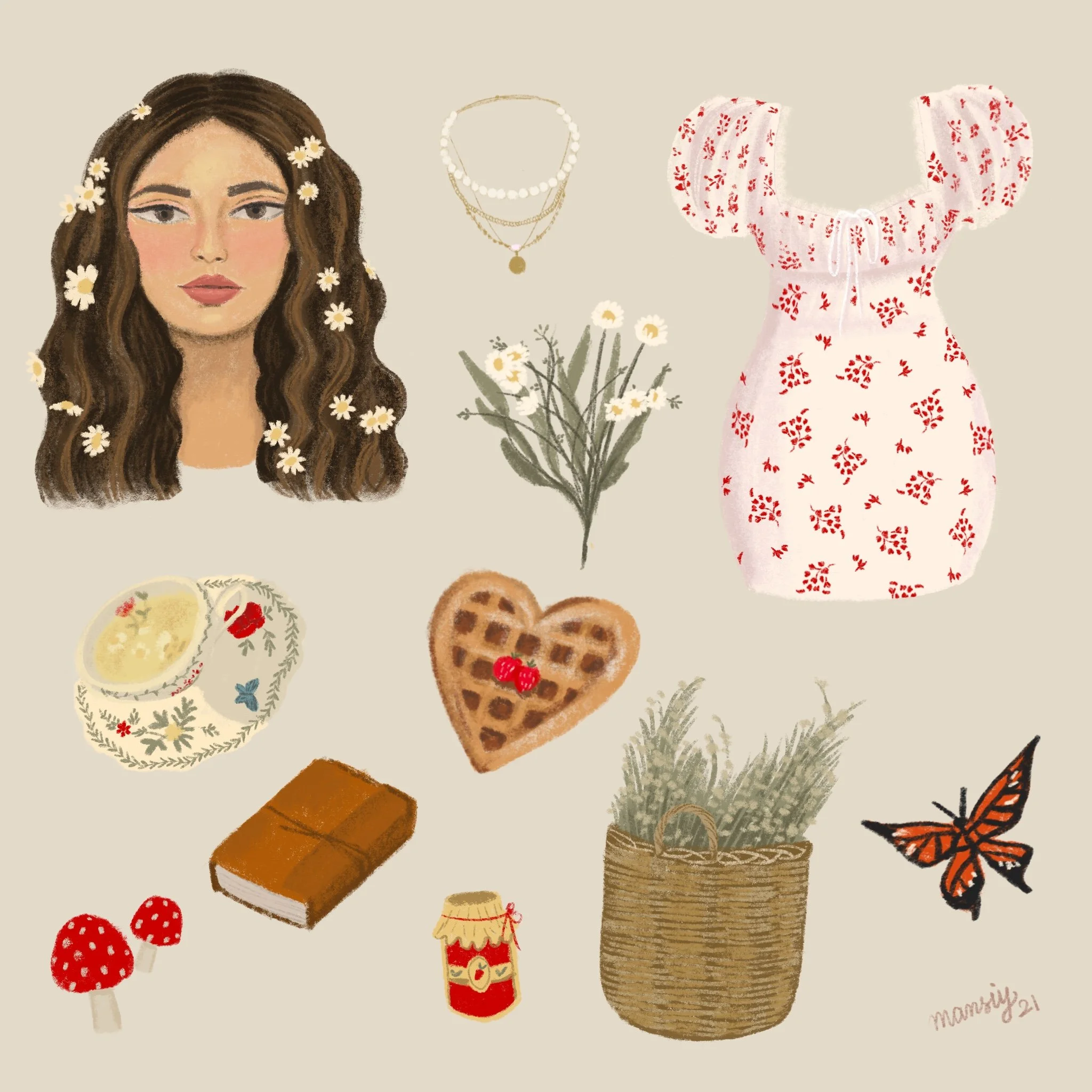 A mix of personal digital paintings, story illustrations, brand illustrations, and fashion-inspired artworks